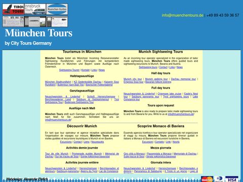Informazioni a proposito di vari itinerari guidati possibili a partire da Monaco di Baviera, compreso giri panoramici di Monaco ed escursioni turistiche in Baviera, nel Salisburghese ed in Tirolo.